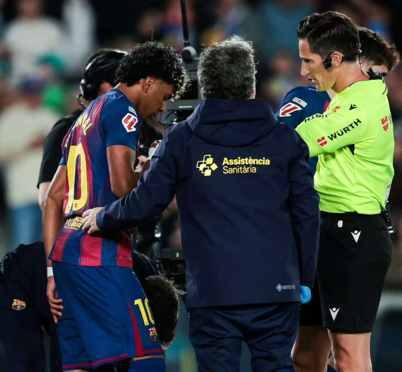 2026年美加墨世界杯,亚马尔将是西班牙队核心,最重要的组成,可是在距离世界杯非常接近的时候,亚马尔这边出现了意外,4月23日,巴塞罗那对阵塞尔塔的比赛中,亚马尔在点球破门后无对抗倒地,亚马尔捂着左大腿离场,他的脸上满是痛苦的表情。